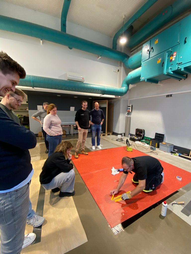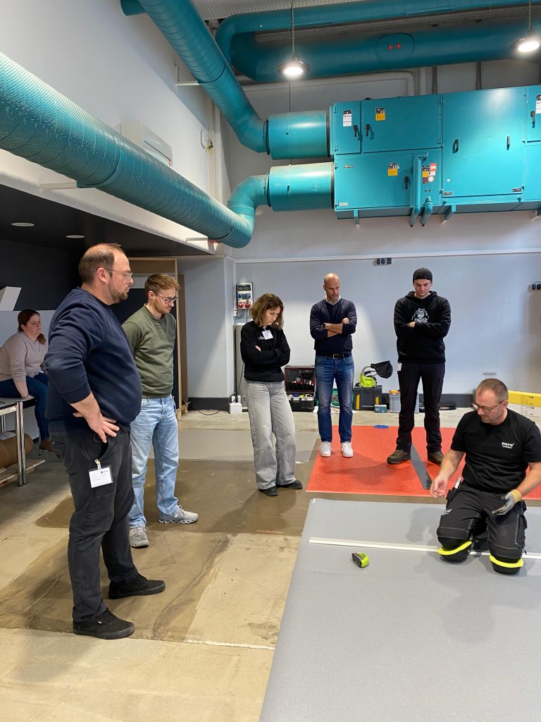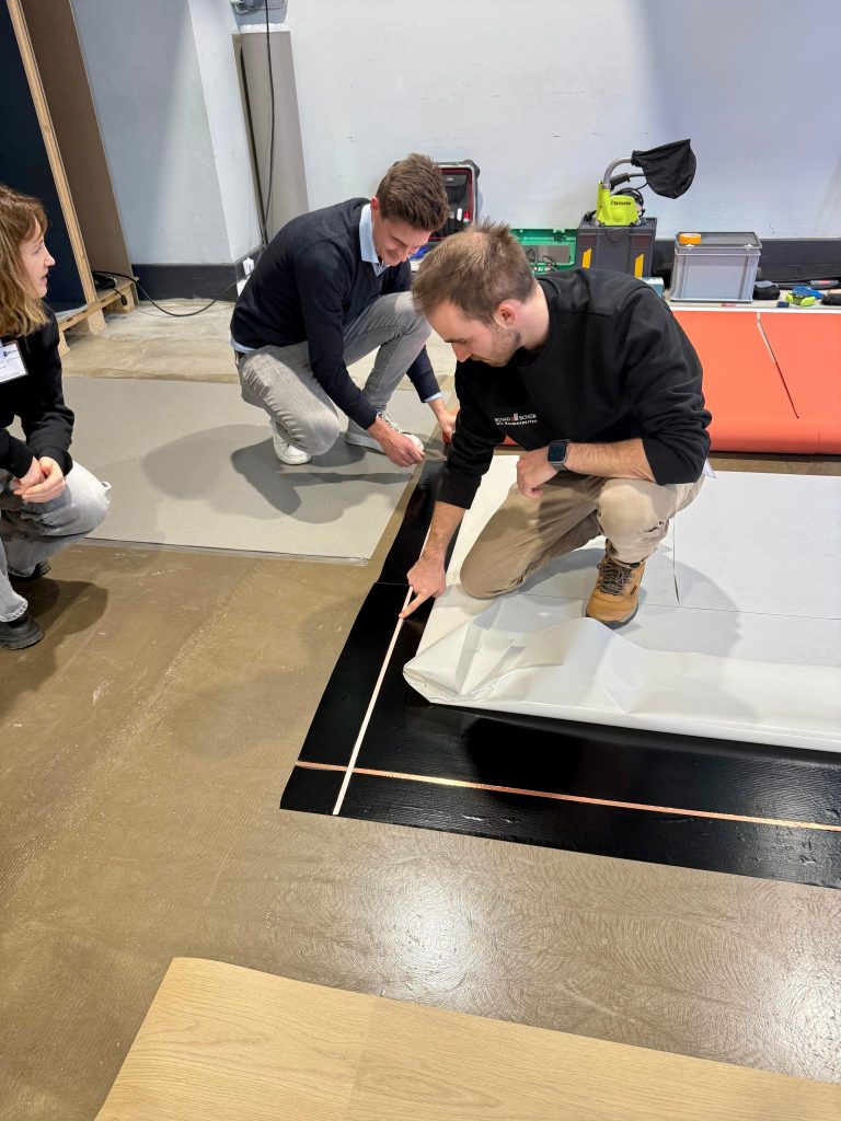 Nach einem gemeinsamen Mittagessen wartete bereits das Highlight des Tages: eine praktische Verlegeschulung. Hier konnten die Zukunftsgestalter selbst aktiv werden, Neues lernen und ihr handwerkliches Können unter Beweis stellen. Gemeinsam wurde ausprobiert, gearbeitet und voneinander gelernt.