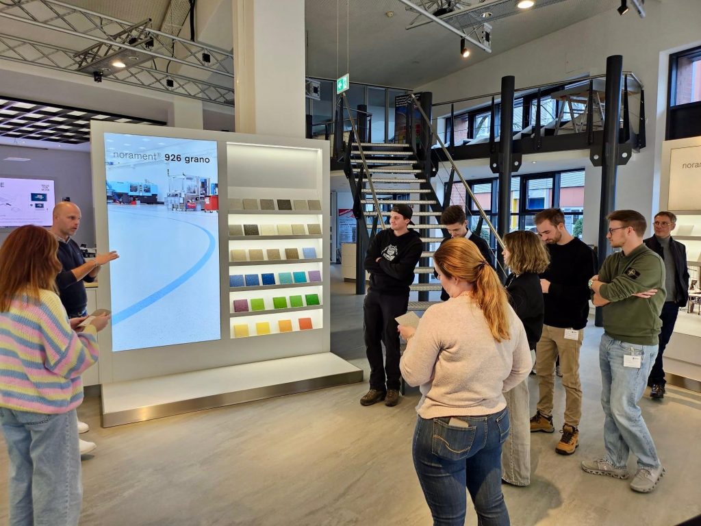Zum Auftakt gab es einen spannenden Einblick in die Firmengeschichte von nora. Dabei wurde deutlich, wie sich das Unternehmen über die Jahre entwickelt hat und welche Rolle Innovation, Qualität und Nachhaltigkeit in der Unternehmensphilosophie spielen.