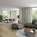 Nevis & Dana – Nevis präsentiert sich als lebhafter Dekostoff mit einem filigranen Blättermotiv im modernen Digitaldruck, erhältlich in zwei Farben und raumhoch. Dana bietet mit ihrer zeitlosen Eleganz in zehn verschiedenen Farben und einer Höhe von 350 cm vielseitige Gestaltungsmöglichkeiten.