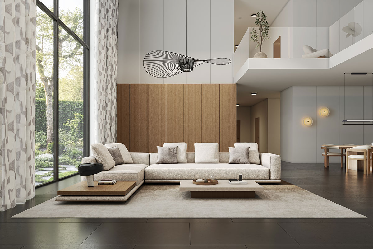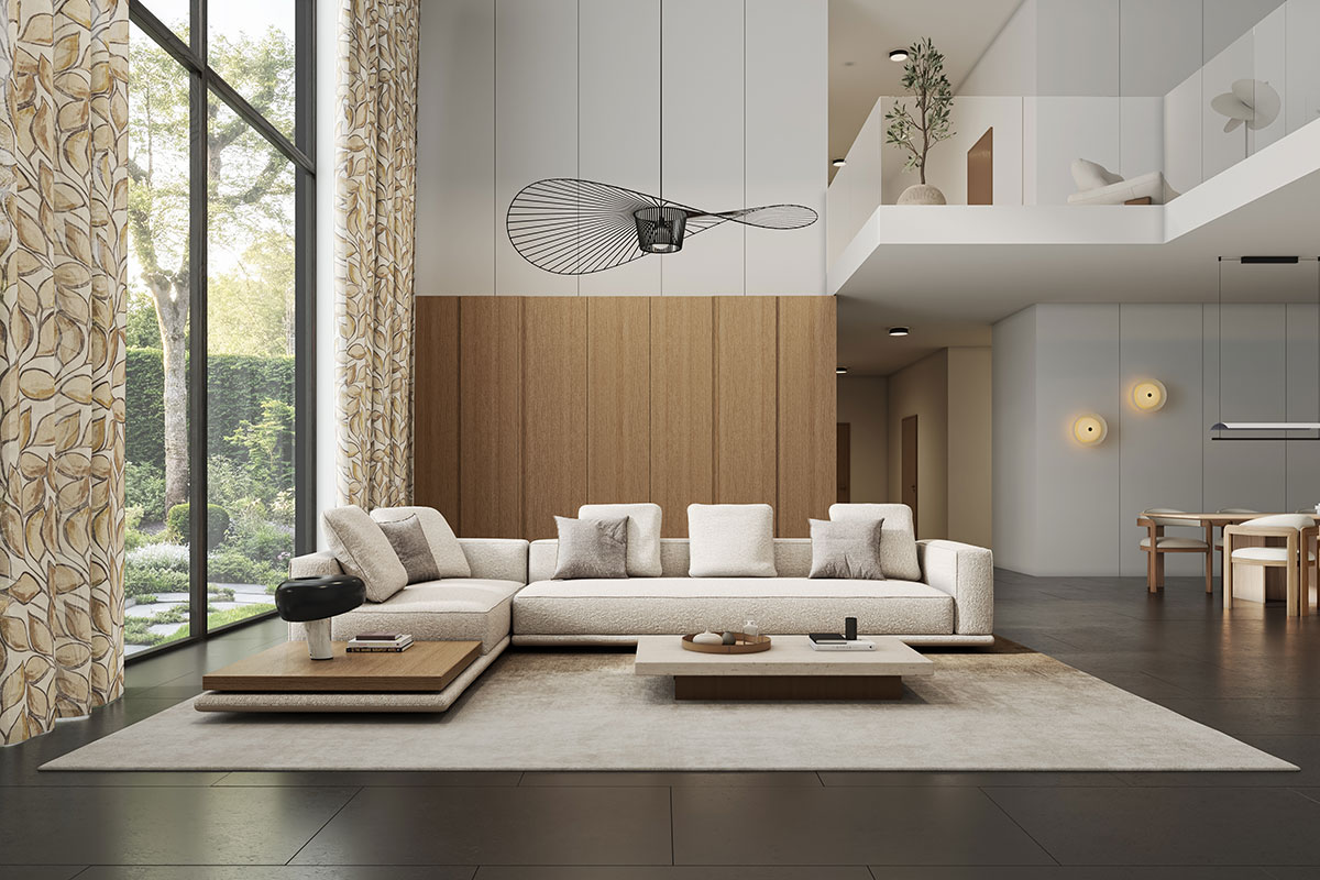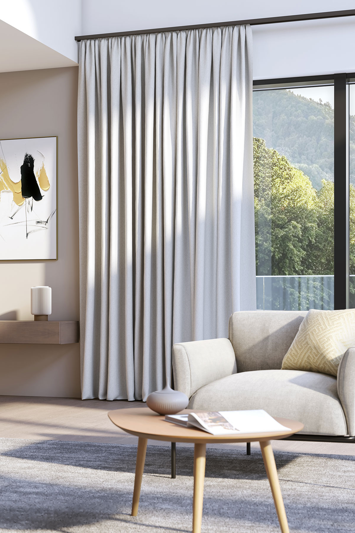 Mara verleiht Räumen mit ihrem feinen Jacquard-Muster eine besondere Note und zeitlose Schönheit. Der hochwertige, raumhohe Stoff ist in vier harmonischen Farben erhältlich und schafft eine stilvolle Atmosphäre.