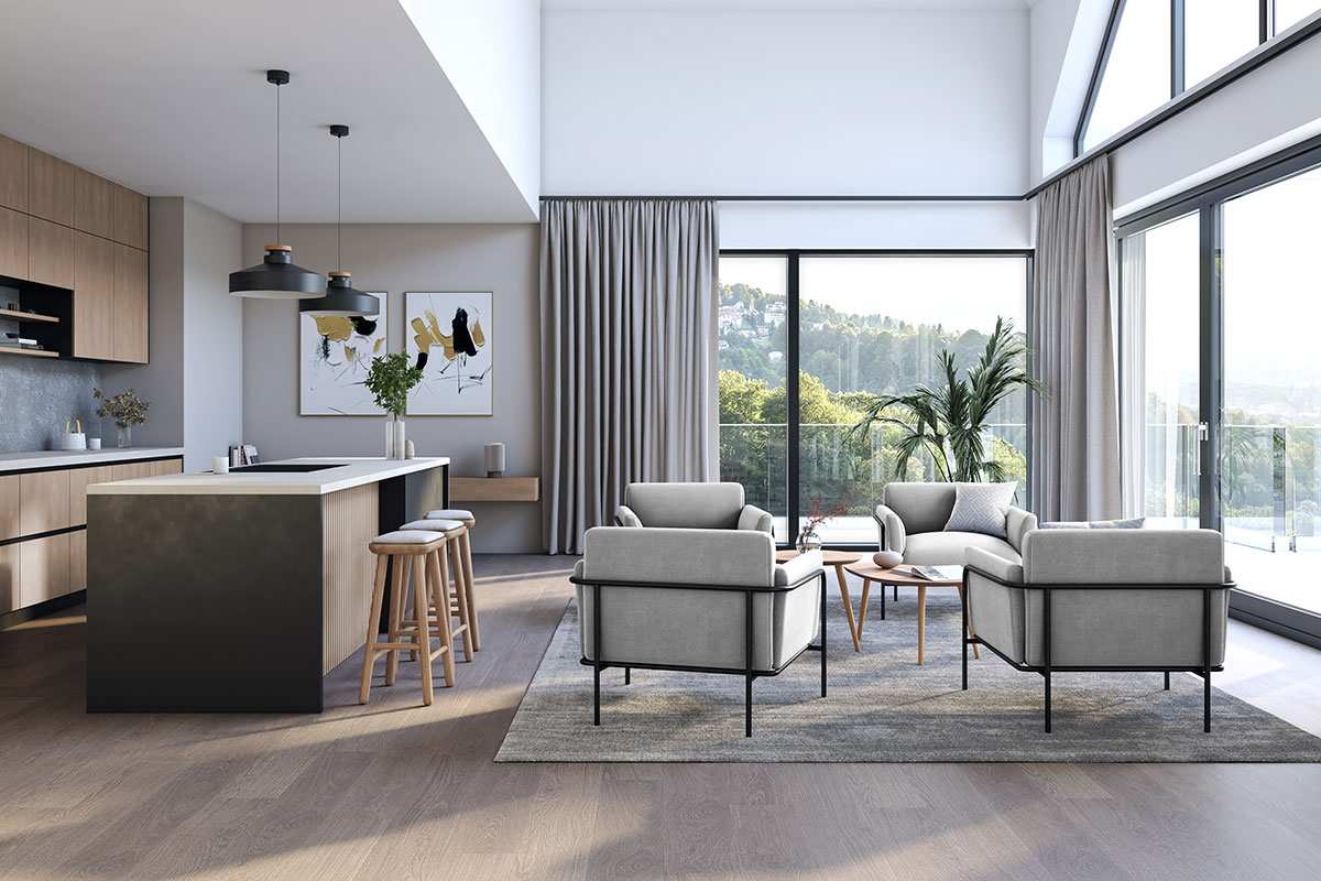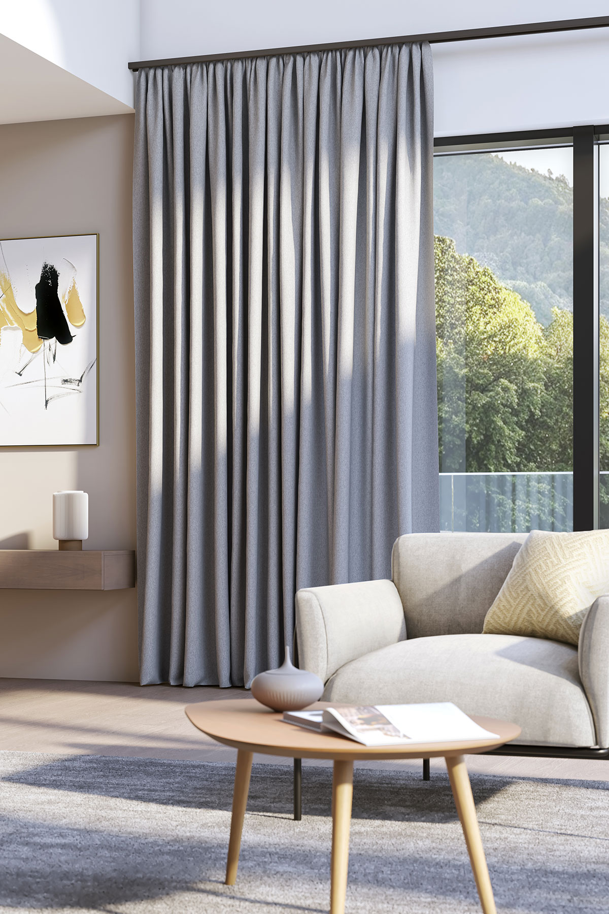Elicio – Der hochwertige, blickdichte Dekostoff begeistert durch sein zeitloses Uni-Design und ist in 12 edlen Farben erhältlich. Raumhoch und schwer entflammbar bietet Elicio vielseitige Gestaltungsmöglichkeiten und eignet sich besonders für den Objektbereich.