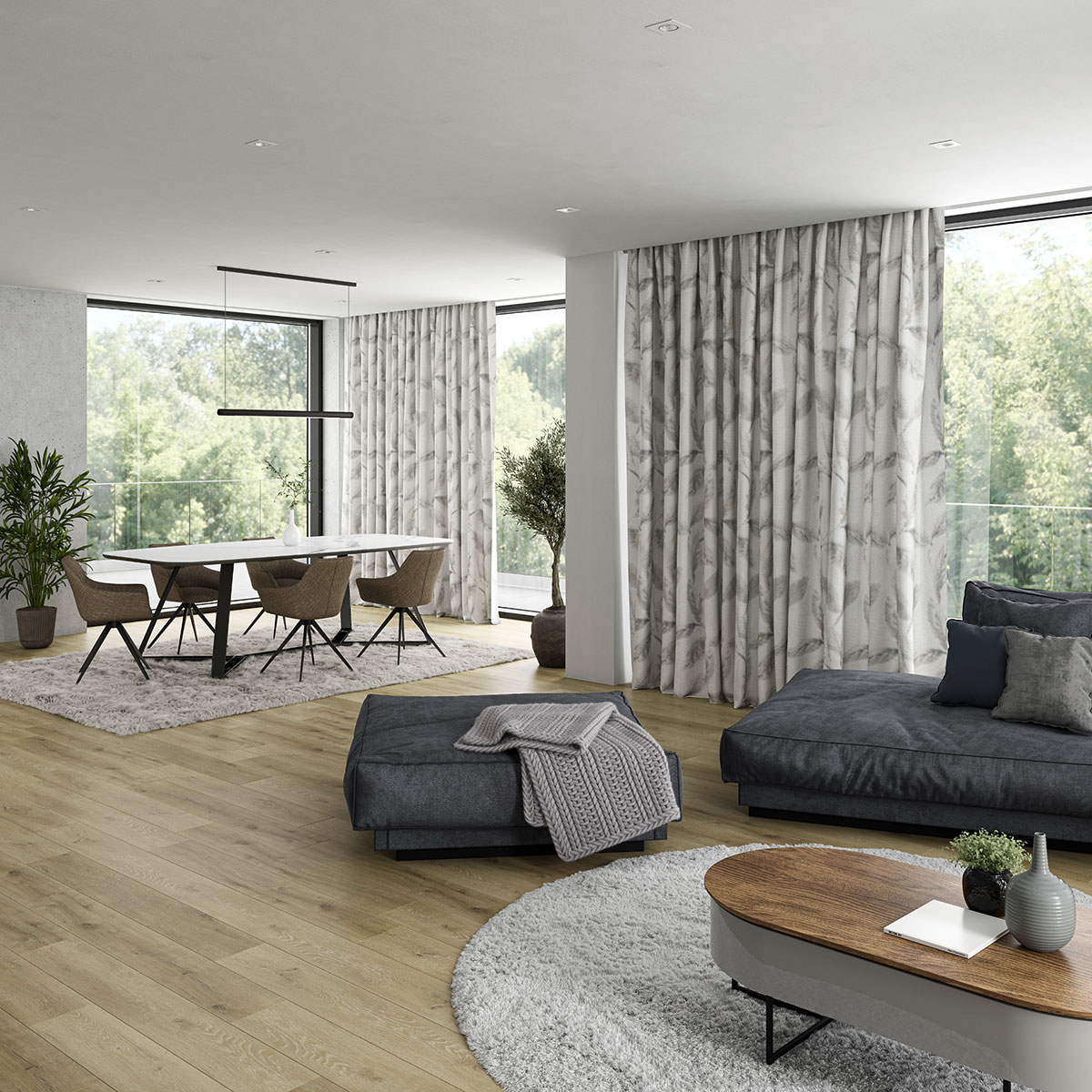 Unsere Kollektion Terra 2 besteht aus zehn raumhohen, pflegeleichten Stores und Dekorationsstoffen. Teilweise in markanten Strukturen gewebt, strahlen sie Langlebigkeit und Beständigkeit aus. Die Muster erinnern an künstlerische Maltechniken. Als Farben haben wir hier natürliche Erd- und Pflanzentöne sowie helle Grautöne und Pastellnuancen gewählt.