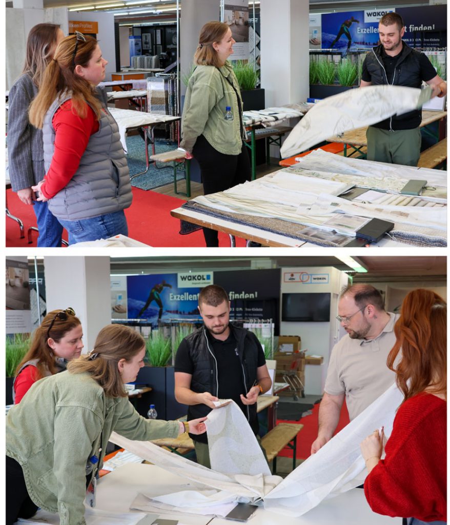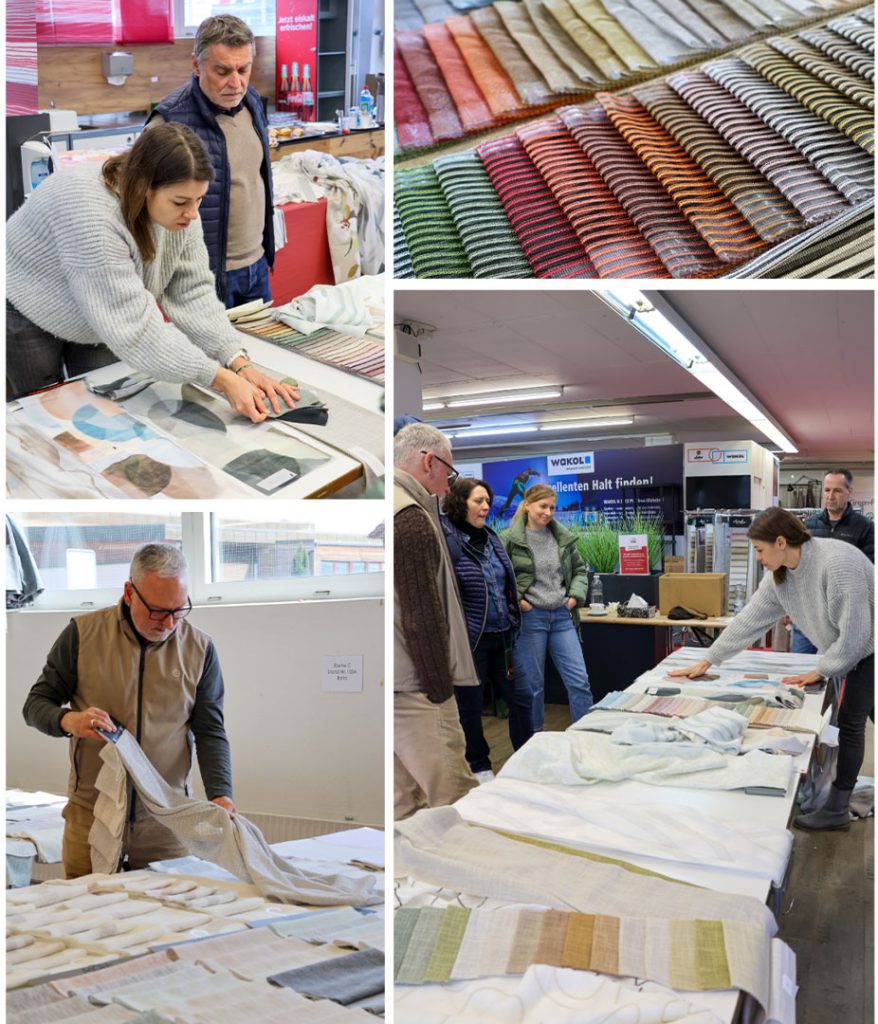 Im Mittelpunkt standen Materialien, Farbwelten und die Frage, welche Stoffe am besten zur jeweiligen Kollektion passen. Gemeinsam wurde gesichtet, diskutiert, kombiniert und immer wieder neu bewertet – bis am Ende eine stimmige Auswahl entstanden ist.